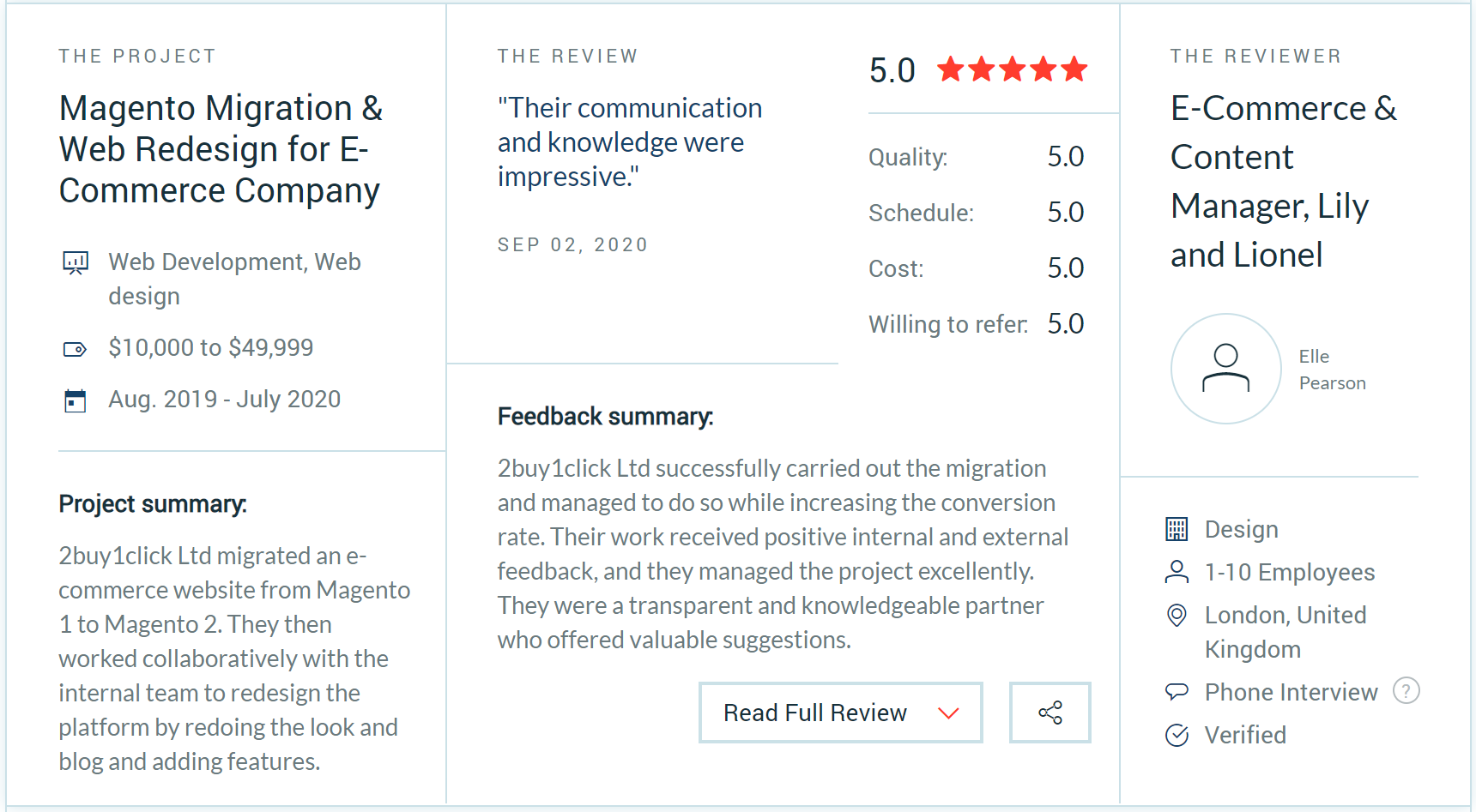 Below is a brief overview of this amazing 5-star review we received. In order to learn more on what our clients have been saying about us on the Clutch platform, please check our Clutch profile.